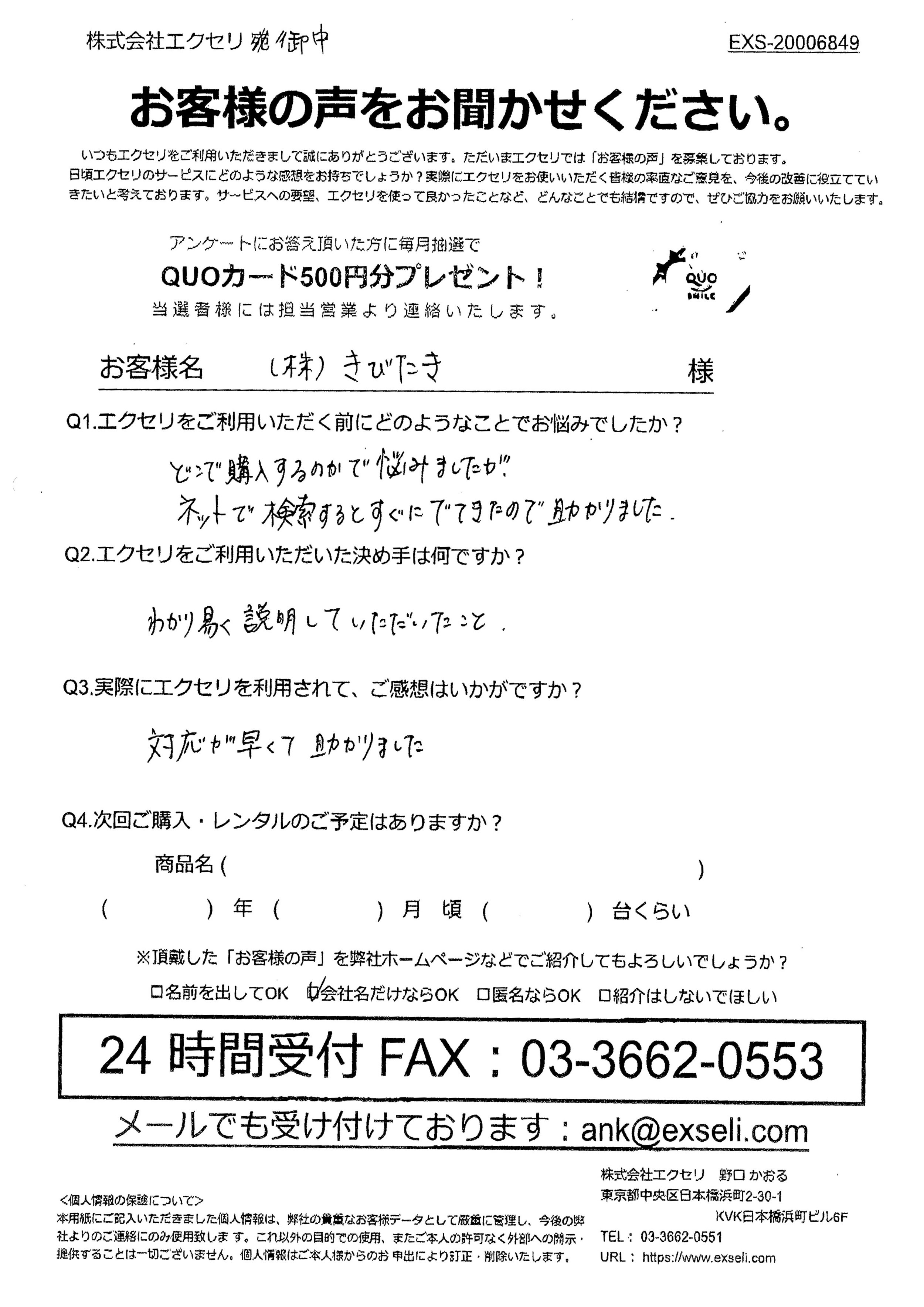 急な対応にも感謝しており、今後とも利用させていただきたいと思っています。