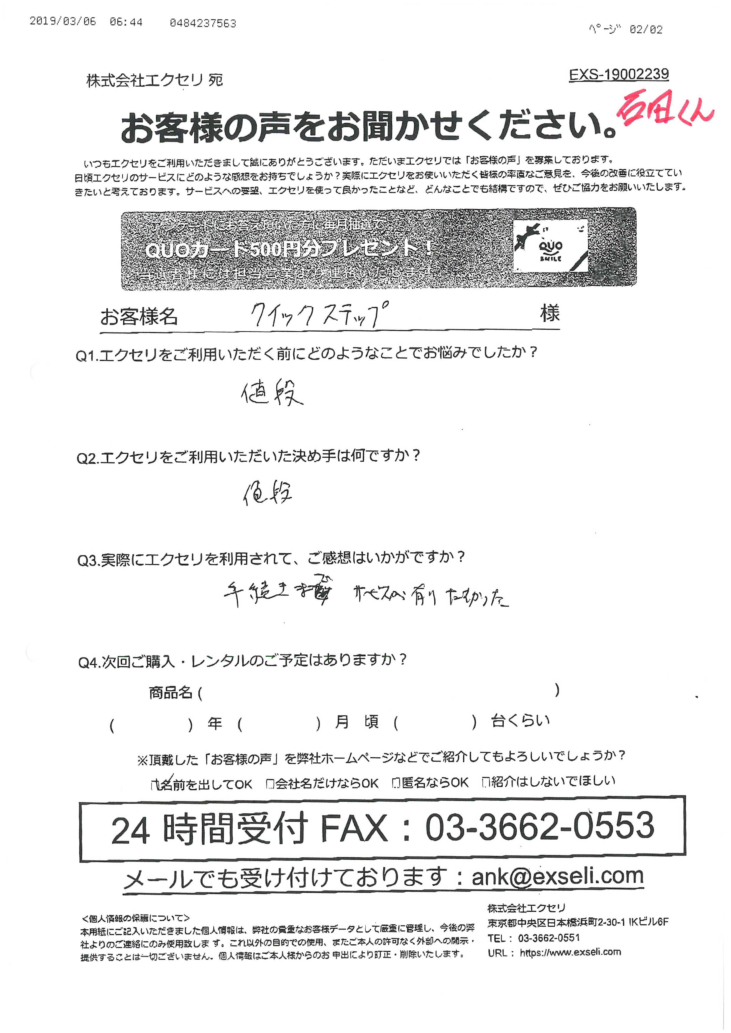 使い方の解説はもちろん、連絡や手続きの早さ、価格の安さで大変助かっています。