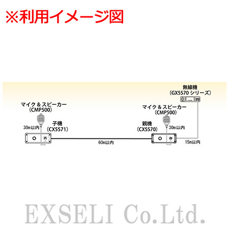 ●別売りのLANケーブルで無線機本体から親機CX5570、親機CX5570から子機CX5571に接続して使用します。