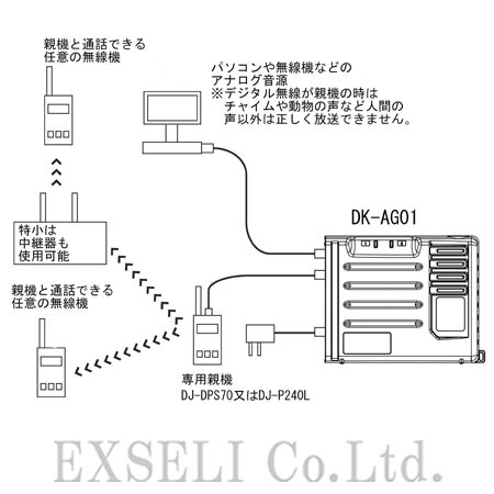- ●DK-AG01 (DKAG01)はアルインコ(ALINCO)製の音声ガイダンス送信システム用インターフェースです。
