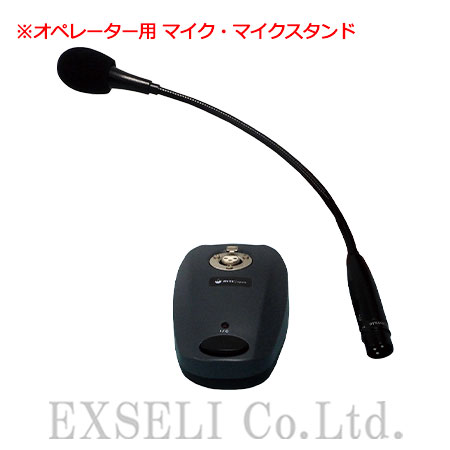 マイク(OLYMPUS ME52W)は上部の3.5mmジャックに接続し、お客様の口元を向くよう角度を調整します。オペレーター側は、トークスイッチ付きマイクスタンドにグースネックマイクを取り付け、スピーカーが正面を向くように操作ユニットを設置します。付属ケーブル2本で制御ユニットと各機器を接続すれば、すぐに使用可能です。