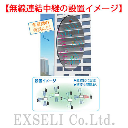 別売えいの無線連結中継装置を使えば広い1フロアや複数階での使用もできます。